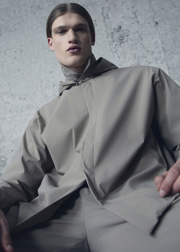 Clean lines and geometric cuts form defined volumes, while technical materials and precise constructions create a simple yet sophisticated aesthetic.