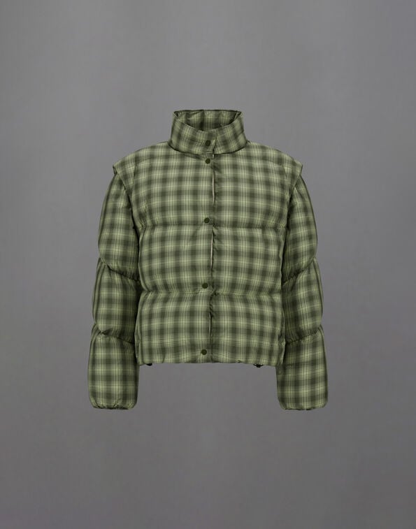 Jacket in recycled polyester taffeta with a rich and elegant yet sporty texture. This item is treated to make it water-resistant and features a sophisticated check motif that accentuates the feel of the weave.