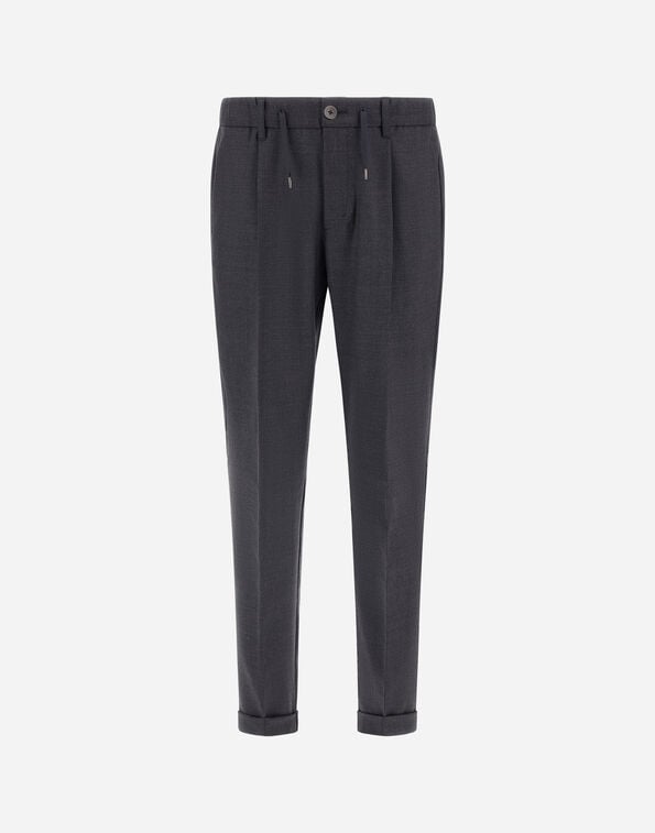 Trousers made from wool blend gabardine with a super-stretchy, fluid texture.