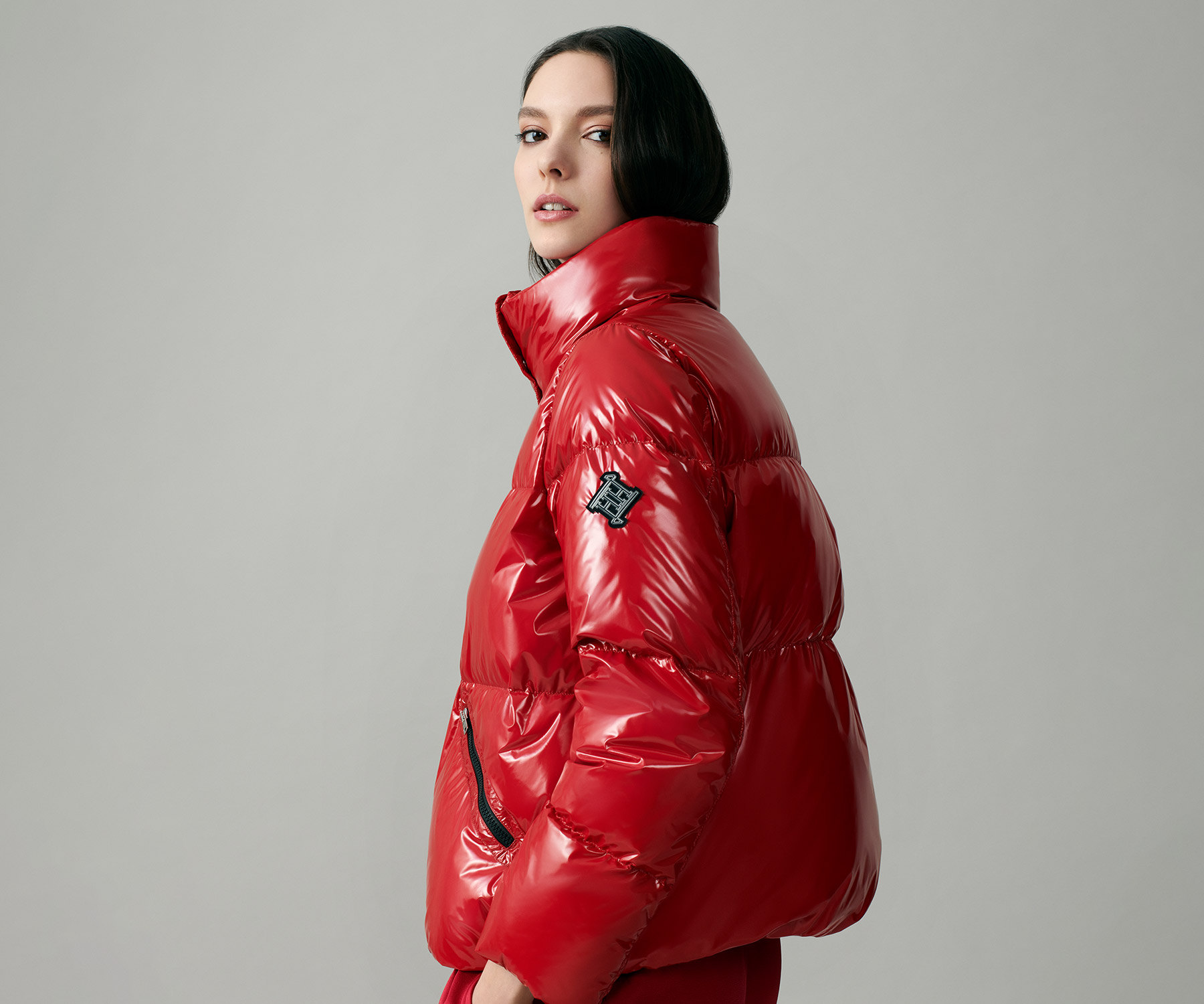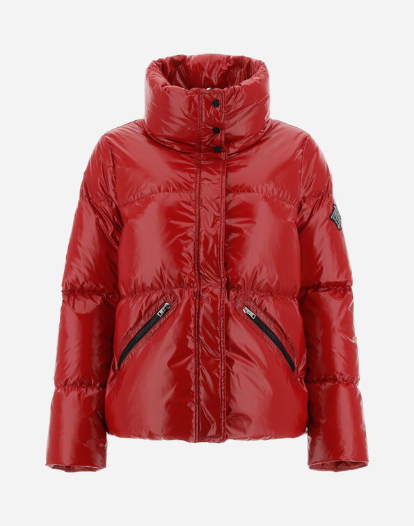 Bomber jacket made from iconic gloss fabric, a very shiny lacquer-effect material that brings out the garment's radiant colours and modern style.