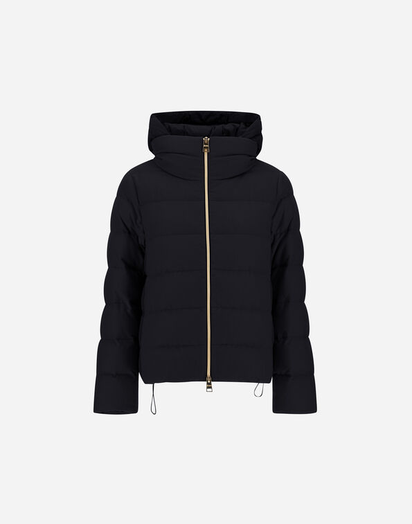 Comfortable and versatile, this piece is finished with soft down padding and a removable hood in soft, glossy and high-density satin with a luxurious, chic finish.