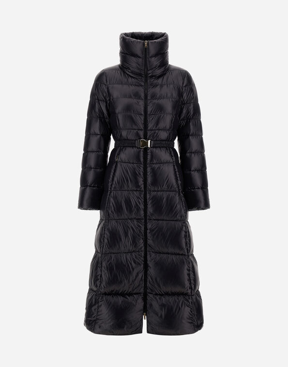 Long jacket in iconic ultralight nylon, which embodies what Herno is really all about. An exclusive technology involving 20-denier Japanese nylon and exquisite 90/10 injected down padding for an even lighter feel. The resulting garment provides decent resistance to water and a particularly luxurious, silk-like feel.